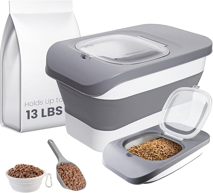 Collapsible Dog Food Container,10-13 LB Cat Food Containers Bin with Lids, Large Pet Food Storage Containers,Dry Food Storage Containers Can Be Use As Cereal Rice Storage Bin, grey