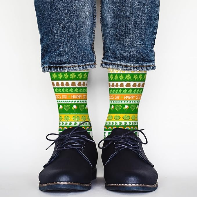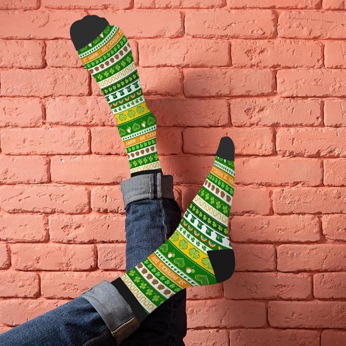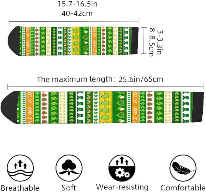 - 【One Size Fits Most】Our St. Patrick's Day funny socks for women and men measure 16" X 3.2" , stretchy, durable and flexible. Fit Mens Shoes 6-10 Approx, Womens 8-12