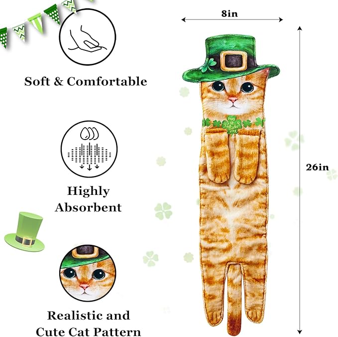 - Cute St. Patrick's Day Decorations: These St. Patrick's Day cat-shaped hand towels can be not only used in bathrooms, kitchens, living rooms, and so on, also give the environment a new look, vitality, and get more compliments.