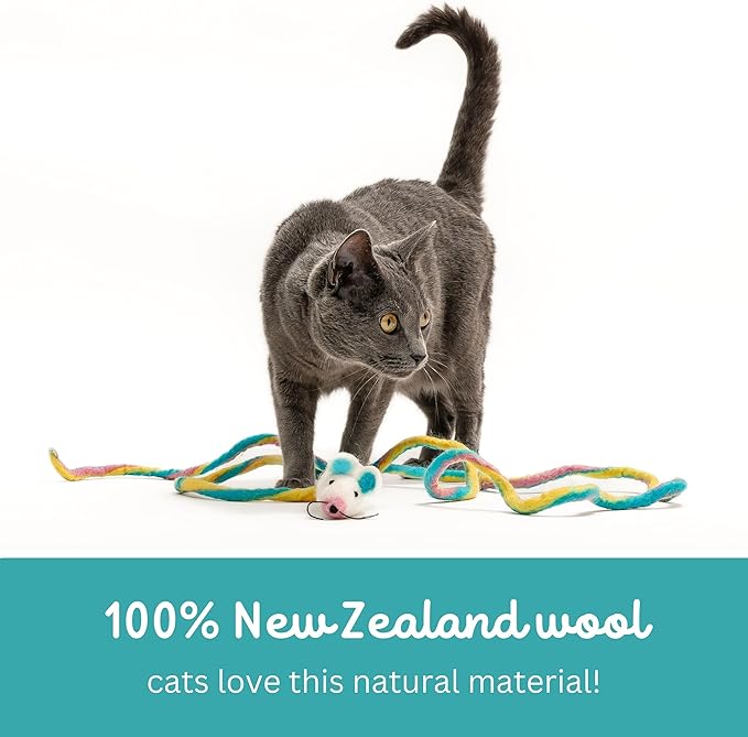 Catch a Mouse by The Tail Wool Cat Mouse Toy with a 6-Foot Tail for Indoor Cats Kittens. Cute Cat Toy Mouse Cat Toy. Rat Plush Toy, Fake Mouse, Mice. No Catnip. Pride (Unicorn Swirl)
