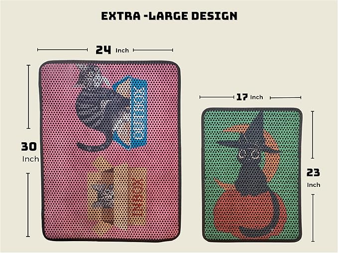 - NON SLIP MATERIAL & PREMIUM QUALITY: This cat litter matt is made of plastic polymer material that is thicker and more durable than any other kitty litter mat xl and Phthalate free. It has a anti-skid bottom that provides strong grip on the floor. Paw's scratches won't damage its durable material. This black-hole litter matt for cat is large enough to cover the area around all sides of the litter box. It holds up well to daily use even in a multi-cat household.