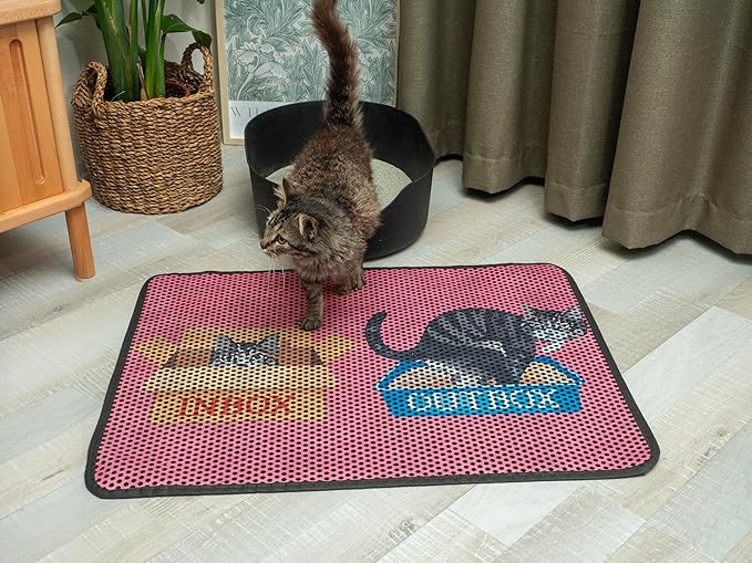 - SOFT & PET FRIENDLY: Our xl cat mat for litter box is made of a durable plastic polymer material that provides a comfy feeling for your pet's paws. This pink cat litter box mat for floor is soft enough that your pet will walk on it without hesitating and it gets most of the litter off of their paws when they cross it after using the litter box. Your cat even will enjoy lying and sleeping on this litter catcher mat.
