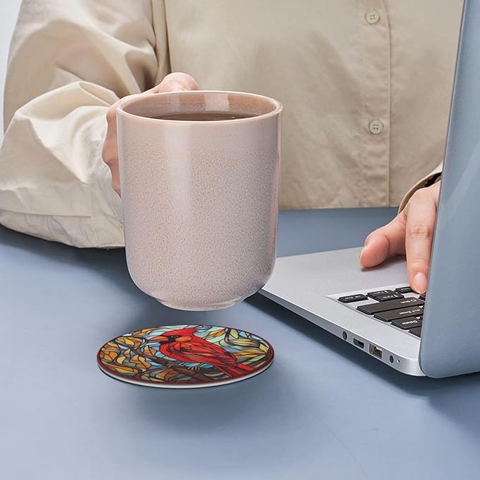 Cardinal Drink Coaster Set of 6, Cardinal Decor Gifts, Leather Drink Coasters with Holder, 6 Pack Cup/Bar/Drink Coasters for Table/Drinks/Coffee Protection Housewarming Gift