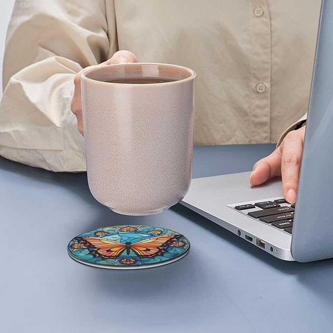 Butterfly Drink Coaster Set of 6, Butterfly Decor Gifts, Leather Drink Coasters with Holder, 6 Pack Cup/Bar/Drink Coasters for Table/Drinks/Coffee Protection Housewarming Gift (Butterfly)