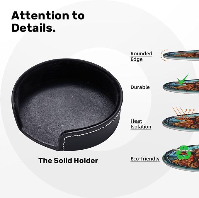 - Choose Your Most Favorite Animal Print – New Unique Creative Stained Glass Design Leather Drink/Cup/Bar/Table Coaster Set With Holder