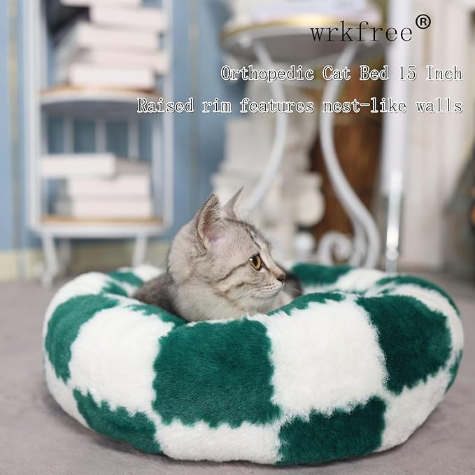 - With its soothing sherpa and raised rim feature nest-like walls, wrkfree's kitten beds for indoor kittens washable gives your furry friend the perfect nook to curl up in. To better offering head and neck support and maintain the shape of the orthopedic kitten bed small, our interior filling is 30% more than most competitors, make it a prime spot for relaxation.