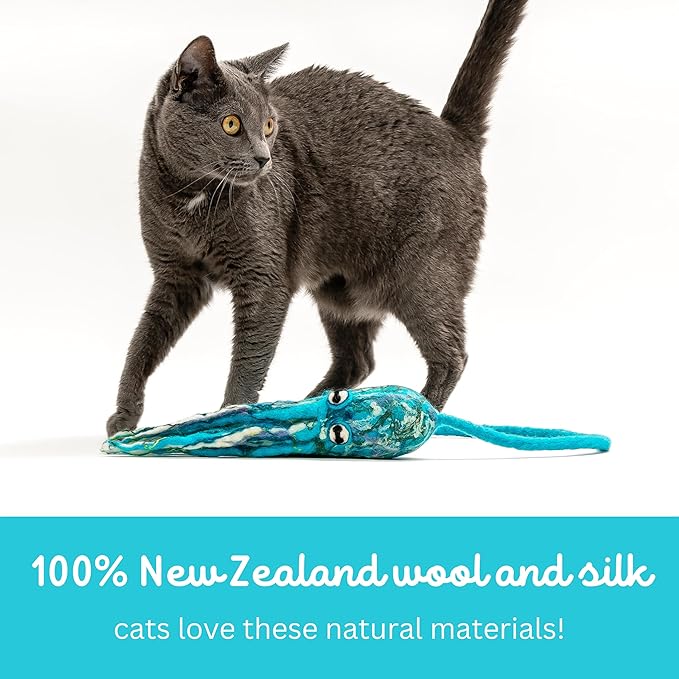 Cat in the Box Ink Floyd Wool Cat Octopus Toy with a 4-Foot Tether for Indoor Cats Kittens. Cute Cat Toy. Cat Kicker. Cat String Toy. Plush Cat Toy. Teaser Wand Kicker for Active Cats. No Catnip.