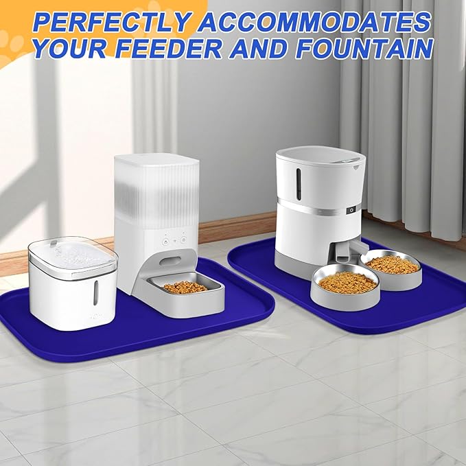 - Widely Used - The anti slip dog food spill mat with high sides can also be used under pet water fountain, automatic feeder, and litter boxes to help contain messes and protect floors. Use as boot mat, shoe matt tray for entryway, pet water splash mat, dog water bowl drip pan. Can also be used for dog crate, trash can, pet water dispenser, countertop, plant, fish tank.