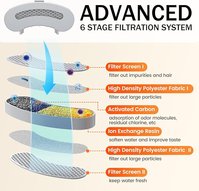 - High-Quality Activated Carbon: Effectively removes impurities, odors, and chlorine from the water. The activated carbon filtration system ensures that your pets are provided with clean and odor-free drinking water