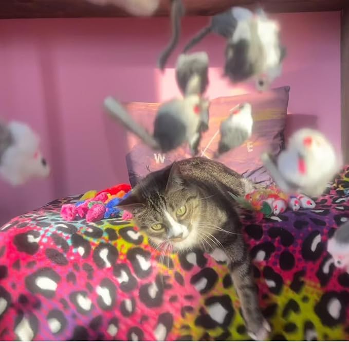 - Our realistic cat faux fur mice toys will keep your bored cat entertained for hours! Just toss the cat toy mice in the air and let your kitty cat enjoy!