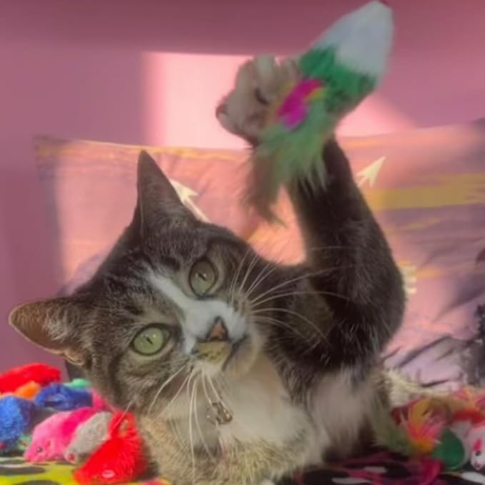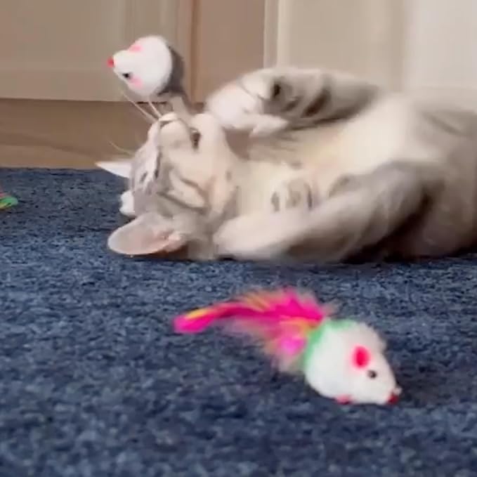 - Our realistic cat faux fur mice toys will keep your bored cat entertained for hours! Just toss the cat toy mice in the air and let your kitty cat enjoy!