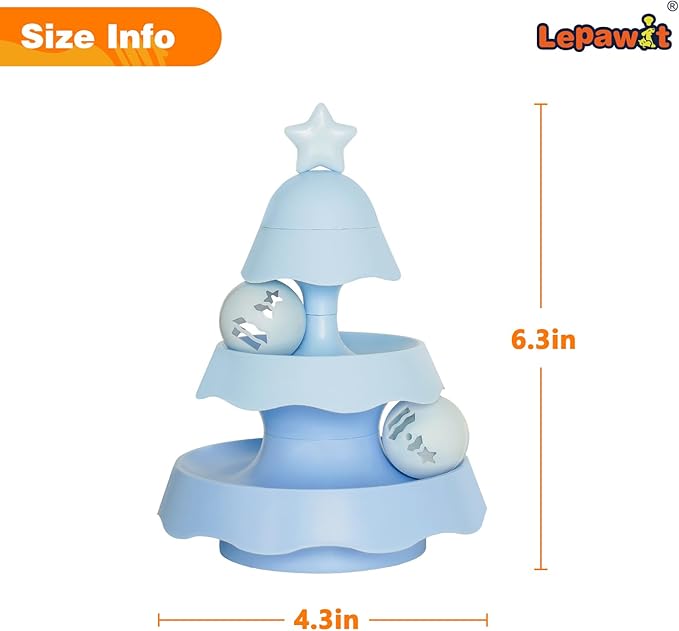 Interactive Cat Toys for Indoor Cats, Teeth Cleaning Dental Chew Catnip Toys, 3 Level Turntable with 3 Track Balls Chase Cat Toy for Kittens - Blue