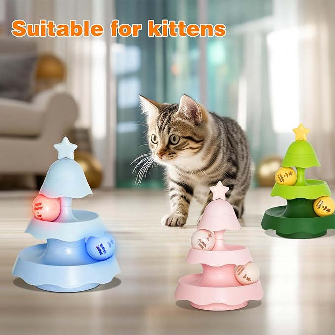 - Cat Track Toy - This interactive cat toy is designed with 2 levels of tracks and 3 moving balls to attract kitty's attention! Your cat will adore batting, swatting, and pouncing the balls as they engage their natural instincts to hunt.
