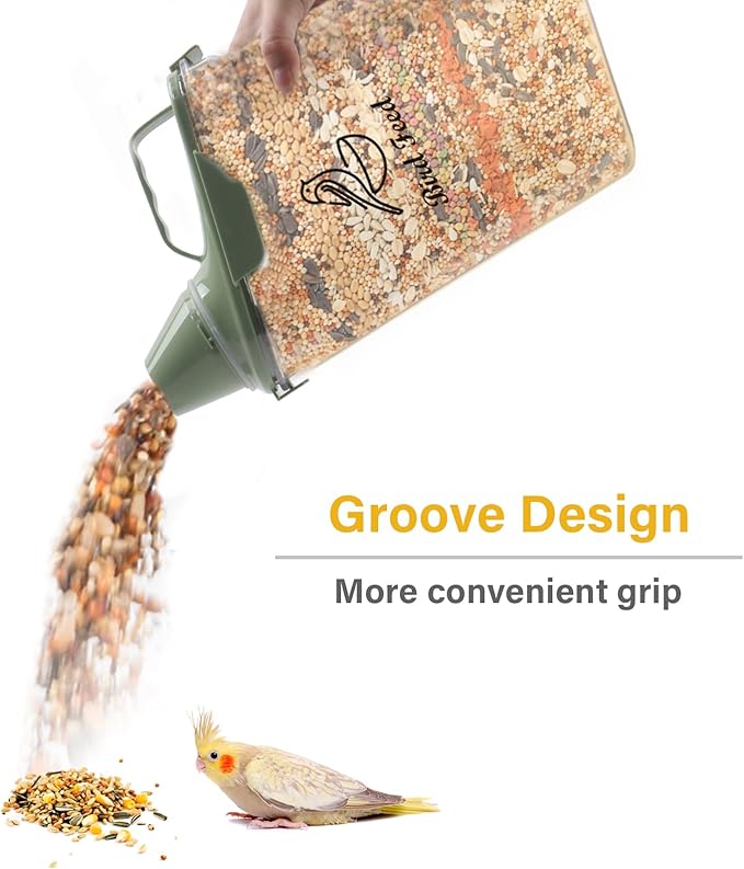 - 3.Airtight lockage:Tall plastic pet food storage build in side-locking lids and silicone seal, ensuring spill-proof and keep the bird food fresh for a longer duration than expected.