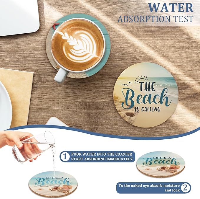 - 【FUNNY BEACH COASTERS】This 6 pack of absorbent cork coasters with a holder are so fun you'll love how much entertainment they add to your home. Guests will be delighted by each funny saying, a different one for each coaster.