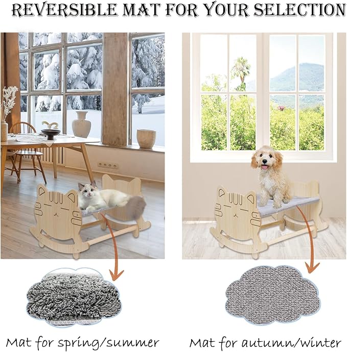 - Cat Hammock Bed with Two Usage Methods: Cat beds can be used as rocking beds or fixed in place as traditional cat beds, with the rocking chair design, the cat can sleep and entertain very well, when your pet climbs on top, this chair will naturally shake; insert small round wooden blocks and sticks into the bottom of the cat bed, and the cat bed will be firmly in place