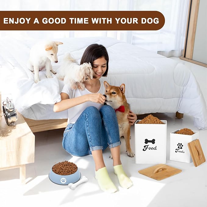 - DURABLE & STURDY MATERIAL - Dog food storage cans are made of metal and will not be easily broken and can be used for a long time. Dog treat container for countertop is coated with a food grade coating to prevent corrosion and rust, making it a great storage option for dog food