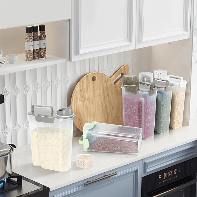 - MULTI-PUrRPOSE STORAGE: Our pet food container is suitable for storing dog food、cat food、bird seed、fish food、rice、 dry food、cereals、oats、wild bird seed、sunflower seed、fruit and nut seed、Thistle Seeds、 flour and other large and small grains, as well as washing powder used at home. It is also a good choice.