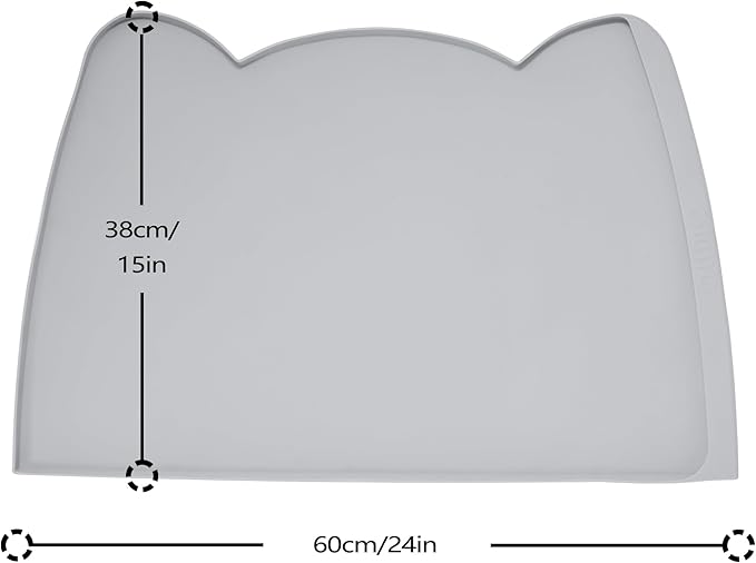 OHMO Dog Food Mat(Ash, 24 * 15'') w/Residue Collection Pocket Silicone Pet Feeding Mat for Floor High Edges Anti Spills Waterproof Cat Water Bowl Tray, Easy Clean Placemat