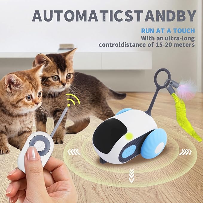- 【turbo tail 2.0 cat toy】Elevate your cat's playtime with our smart remote control cat toy featuring two distinct modes. In the intuitive smart interactive mode, watch as the toy autonomously moves, shakes, and bounces, captivating your feline without the need for app control. For an added layer of excitement, switch to remote control mode and personally engage with your cat using the included remote controller, fostering a deeper bond and enhancing the overall experience.
