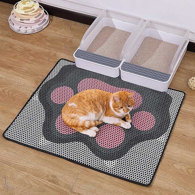 Bienbee Cat Litter Mat, 30"x24" Cat Litter Trapping Mat, Double Layer Litter Mat with Non-Slip Rubber Bottom, Urine and Water Proof, Keeps Floors Clean Cat Claw L