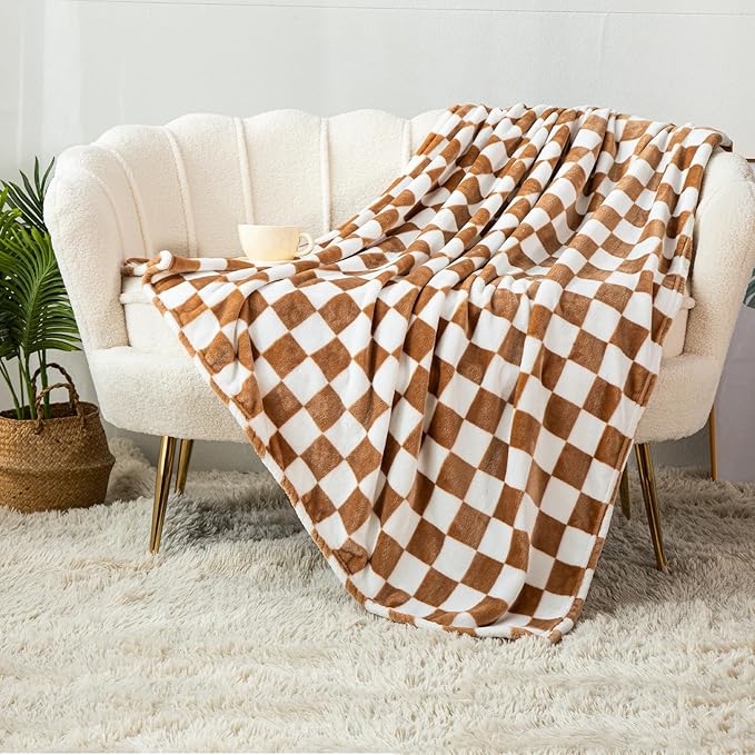 Checkered Throw Blanket | Soft Fleece Flannel Cozy Checkerboard Grid Blanket | Couch Sofa Bed Chessboard Blankets Throws | Birthday Valentine's Day Gifts 40"x60" Khaki Blanket