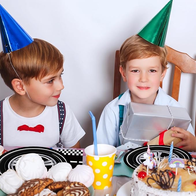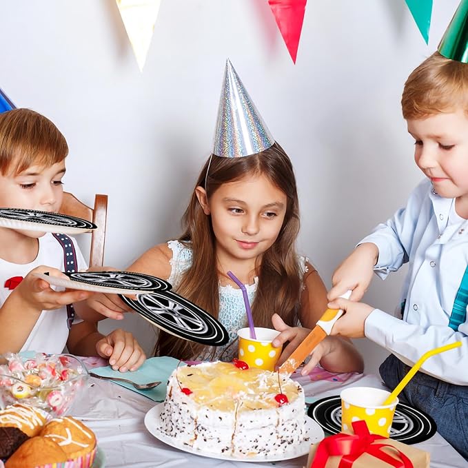 - 【Perfectly Creative】This is a perfect race car themed party idea, with a nice design incorporating car wheel themed elements. The design of this racing party tableware kit feature wheels and race track elements that are popular with all ages, decorating your race car party with these tableware kits can make your party full of the exciting competition atmosphere.