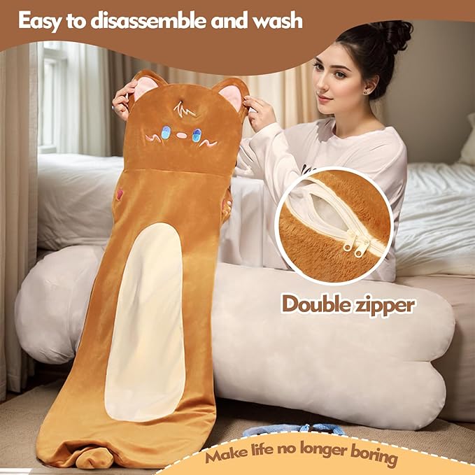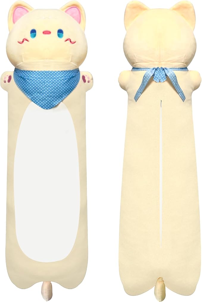 - LONG CAT PLUSHIE--the cat body pillow is made of high quality PP fabrics padding,good elasticity, no deformation when you pulled it,very full,double zipper design for easy cleaning,soft and fluffygiving you super comfortable enjoyment.
