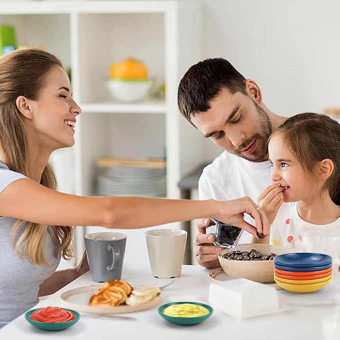 4 Inch Soy Sauce Dishes 8 Pieces, Lightweight and Unbreakable Wheat Straw Plates, Small Sauce Plate, Mini Serving Plates for Side Dishes, Condiment, Appetizer (Multicolor)