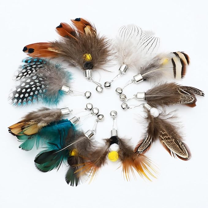 • Package includes: You will receive 10 insect feather replacement, available in 10 different style. This cat feather toy come with tinkle bell with rustling sound, it is easy to catch your cats attention.