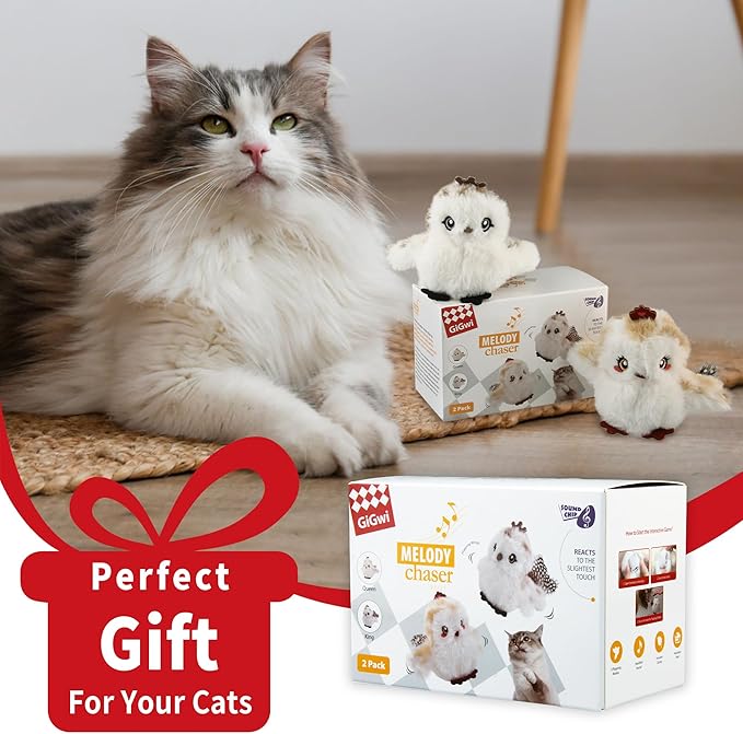 - UNIQUE BIRDS COUPLE DESIGN: Our pair-mate cat birds toys with CATNIP inside built-in motion sensor. They are designed to satisfy your cat's hunting instinct and keep them from being bored. The automatic cat enrichment toys will make realistic chirping bird sounds and vibrate their wings once they are patted (bite, chew, and chase could help to activate it)