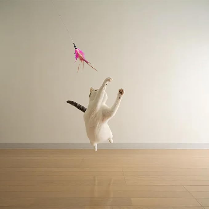 - 【Cat Feather Toy】The wand is made of bendable steel, sturdy but flexible. There are feathers and a bell on the end of the wand, which are cat’s favorite.