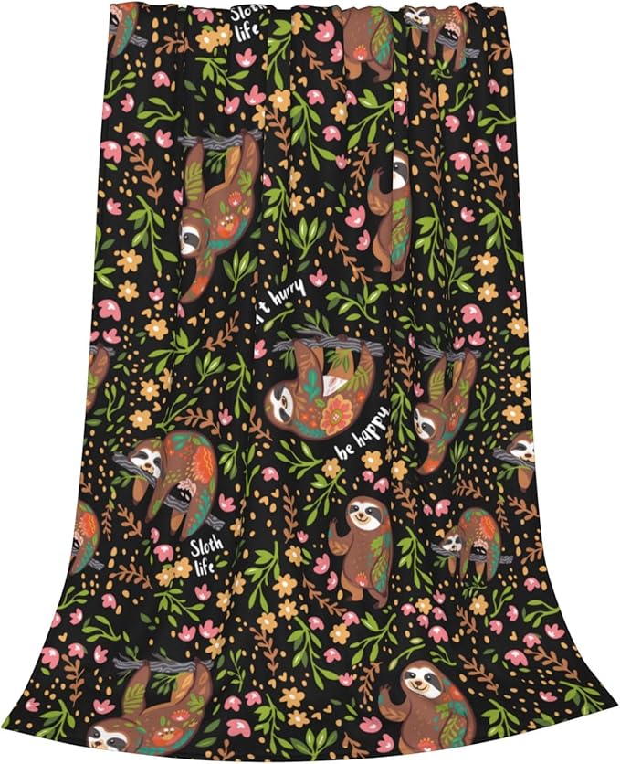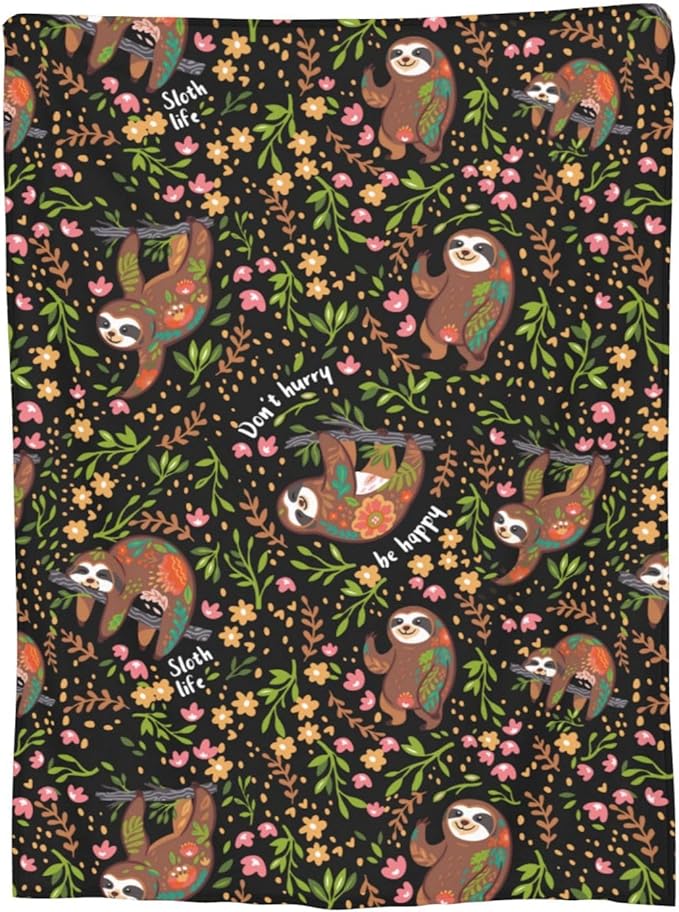 Ultra-Soft Microfiber Throw Blanket 330 GSM Fuzzy Fleece Blanket for Adults Kids Gift Couch, Sofa, Bed Sloth Black 50"X40"