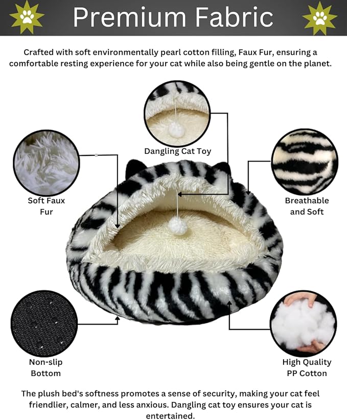 - [Soft & Cozy Material]: Made with premium plush fabric and a faux fur lining that’s soft and calming, this bed features fluffy cotton filling for optimal support. It keeps your cat warm and comfortable, promoting restful naps and stress relief.