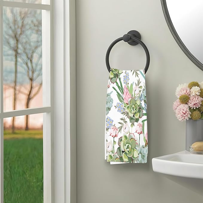 Succulent Herbs Bath Hand Towels for Bathroom Decorative,Flowers Soft Absorbent Hand Towels for Kitchen Home Gym Beach 16"x24"