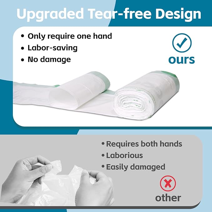 - Pre-separated Rolls: Each cat litter box bags is pre-separated, so you don’t need to tear them apart, making litter box bags changes quick and easy. Litter box bags come in roll that ensures they are easy to store, saving space in your home. Perfect for any household, these litter bags offer simplicity and efficiency in one neat package