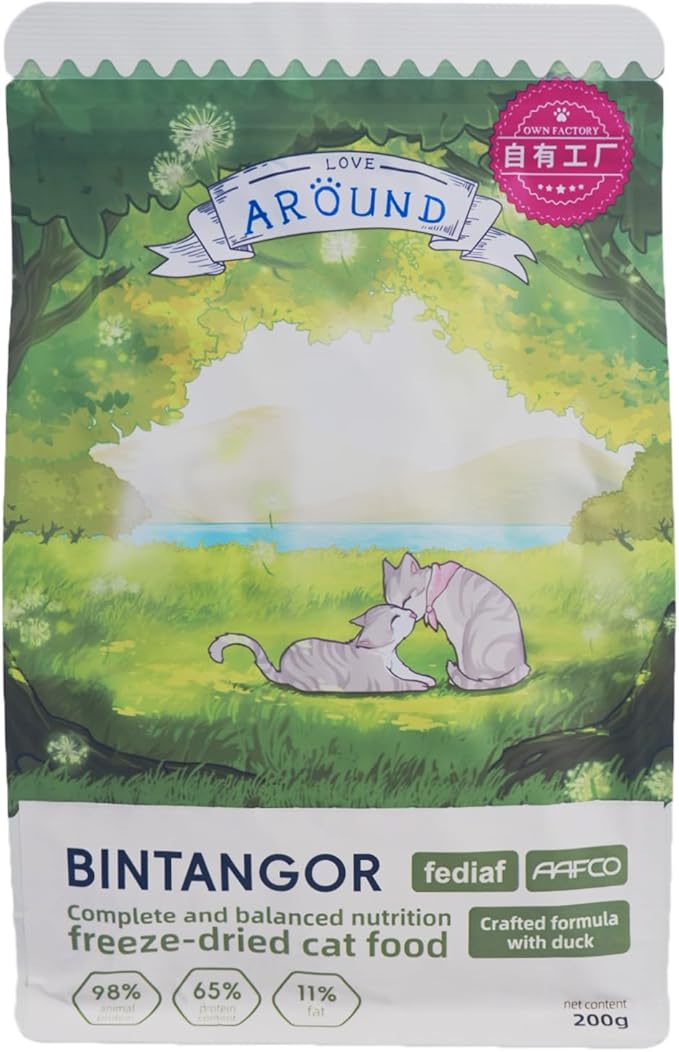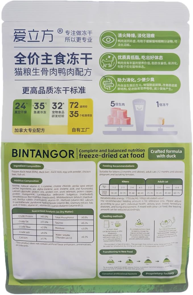 Bintangor Freeze Dried Cat Treats; Dry Cat Food Premium, Healthy, High Protein Instinct Cat Food- Duck Flavor, 200g Bag