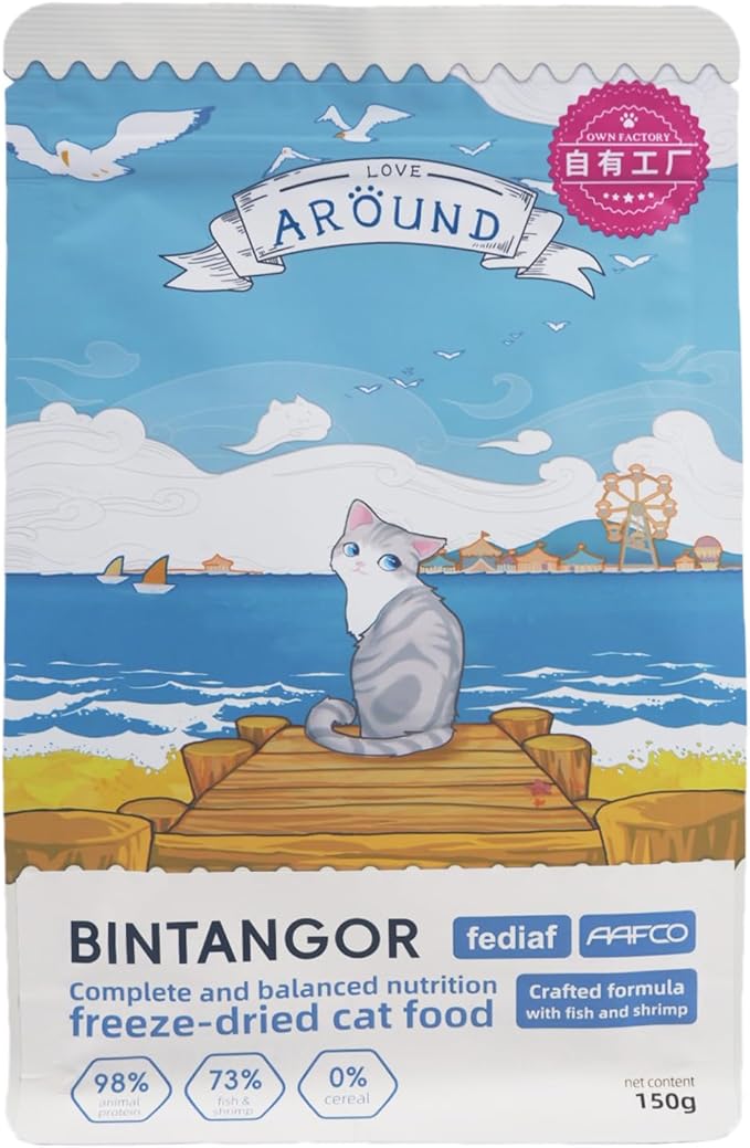 Bintangor Freeze Dried Cat Treats; Dry Cat Food Premium, Healthy, High Protein Instinct Cat Food- Fish and Shrimp Flavor, 150g Bag