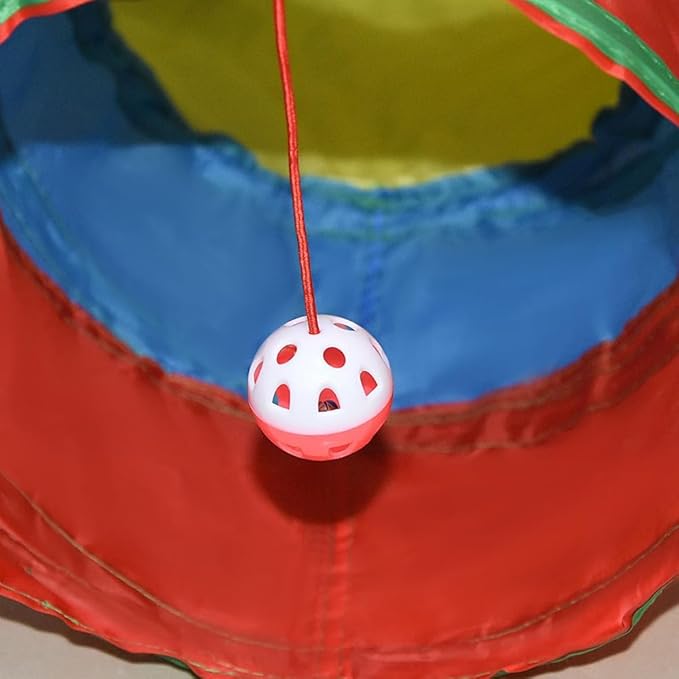 Cat Tunnel Tube Toys, Rainbow Tunnels for Indoor Cats, 3 Way Collapsible Interactive Toy Maze House with Peek Holes Dangling Ball for Rabbit, Kitten, Kitty, Puppy