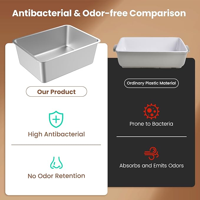 - ππππ¨π«ππ₯ππ¬π¬ ππ₯πππ§π’π§π : Featuring a non-stick surface, our steel litter box is simple to clean. Just a quick rinse and wipe, and it's ready for use again, saving you time for more bonding moments with your pets.