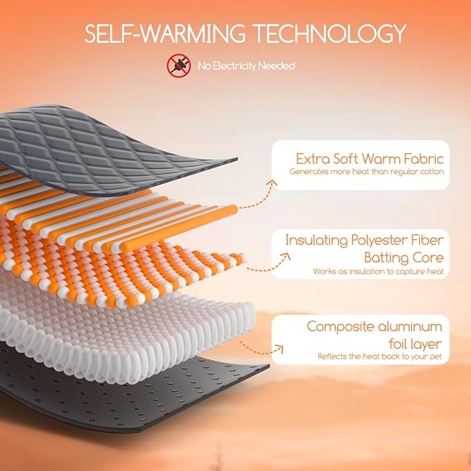 - SELF-WARMING TECHNOLOGY: The insulating polyester fiber batting core inside the Nobleza dog crate mat traps heat and locks in the temperature. Composite aluminum foil layer reflects that captured heat back to warm up your pet without the use of electricity to create the perfect nap spot for your furry child in the safest way possible.
