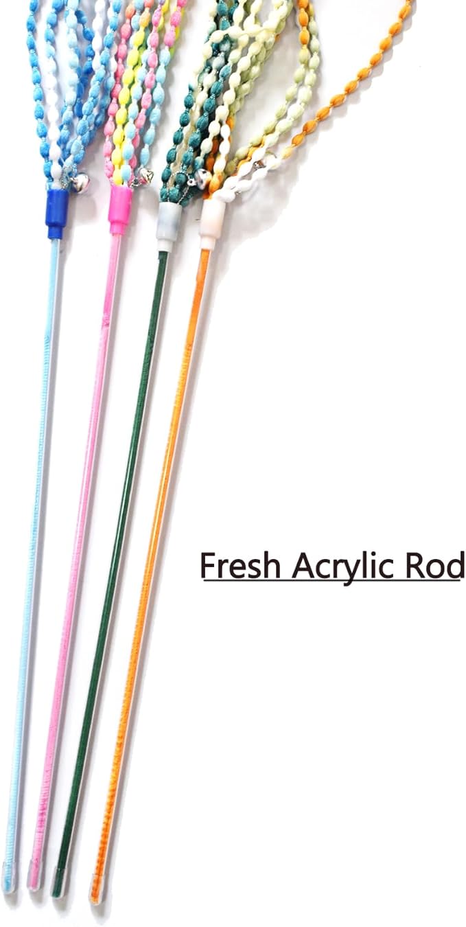 - Perfect Size For Most Kittens-The acrylic fishing rod is 14.5 inches long, each string is 19.6''. Long enough for your cat to have more space and maximum entertainment when playing with you