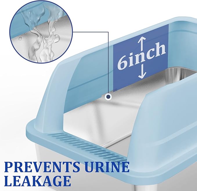 - This cat litter box is made of stainless steel material, the litter is not easy to stick to the bottom of the box; Our stainless steel cat litter box enclosure is high enough to prevent litter scatter and urine spilling everywhere