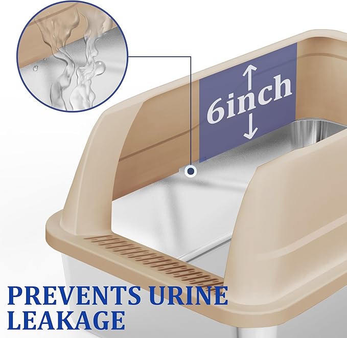 - This cat litter box is made of stainless steel material, the litter is not easy to stick to the bottom of the box; Our stainless steel cat litter box enclosure is high enough to prevent litter scatter and urine spilling everywhere