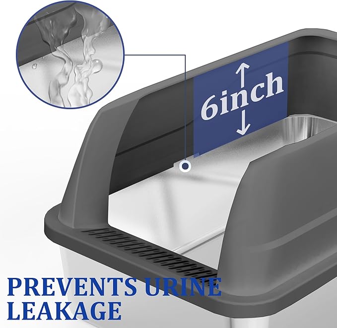 - This cat litter box is made of stainless steel material, the litter is not easy to stick to the bottom of the box; Our stainless steel cat litter box enclosure is high enough to prevent litter scatter and urine spilling everywhere