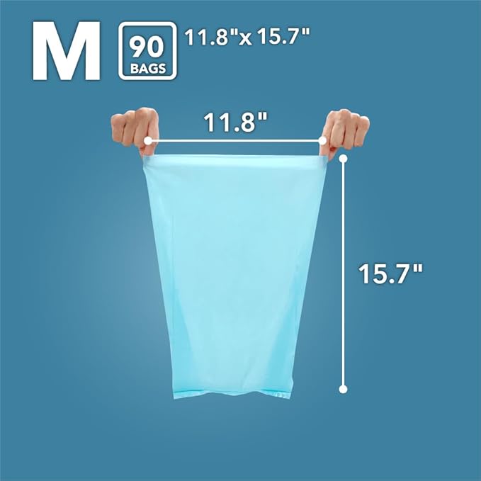 BOS Amazing Odor Sealing Cat Waste Disposal Bags - Durable and Unscented [Size: M, Color: Light blue] (Pack of 1)