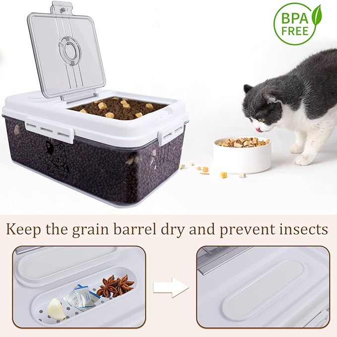- 【Airtight cat food container】:Freshness Guaranteed,The triple side-locking lid and gasket seal create an airtight environment, prolonging pet food storgae and preventing moisture and keep food dry and fresh.