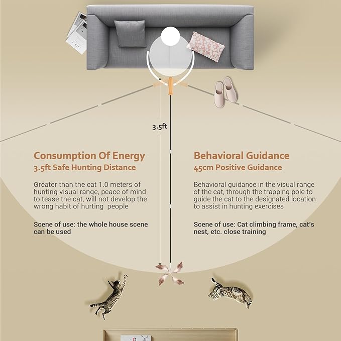 - Cat Fishing Pole Toys with Innovative 3-Section Design: The cat fishing pole extends to an impressive 43in, giving the kitty ample space to run and jump with glee. After playtime, the toys conveniently retract to 16in for easy storage.