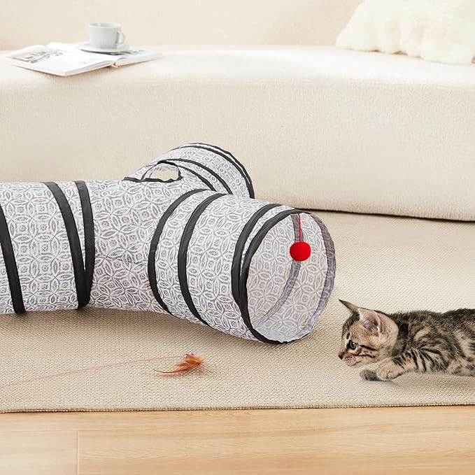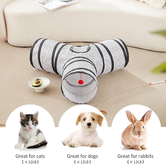 - 3 Way Cat Play Tunnel: Our cat tunnel with 3 spacious tunnels, peephole and ball toy, this popular cat toy gives your kitty more ways to have fun. It is an indoor toy that your pet deserves.