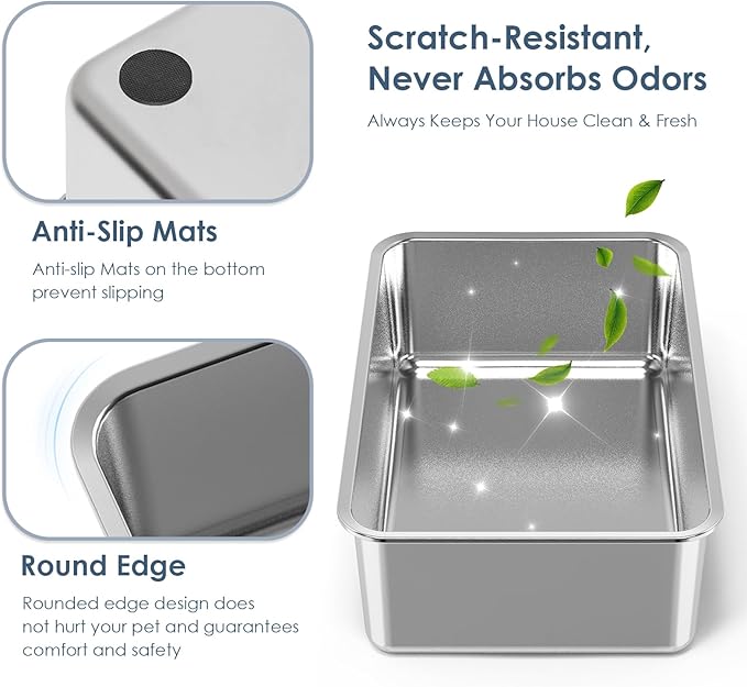 - Say Goodbye to Cat Litter Box Battles: To eliminate the need for your cats to battle over cat litter box stainless steel, you will receive 2 stainless steel litter boxes and 2 catching litter footboards that are interchangeable, making it easier to take care of multiple kittens in your house. No more fighting in multi-cats household